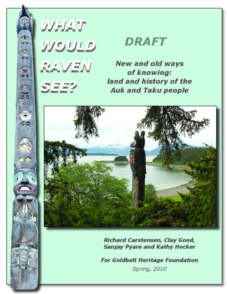 Carstensen, Good & Pyare � New and old ways of knowing: land and history of the Auk and Taku people Richard Carstensen, Clay Good, Sanjay Pyare and Kathy Hocker For Goldbelt Heritage Foundation Spring, 2010 What Would Raven see? What Would Raven see? draft � • www.goldbelt.com/goldbelt-heritage-foundation Adaa analgéin Raven’s way of studying the world “The word we’ve always used in teaching and instructing our young people is attributed to Raven (Yéil). What the ancient teachers would say to their students was adaa analgéin, adaa analgéin! This means, to look at, to evaluate, to savor, to think it over, whether it’s in the attainment of something or the fixing of something. You had to be able to make small little tests, to see if what you were thinking might work. Studying has always been an important part of our educational sytem. Adaa analgéin: to pay attention, to be still, to…