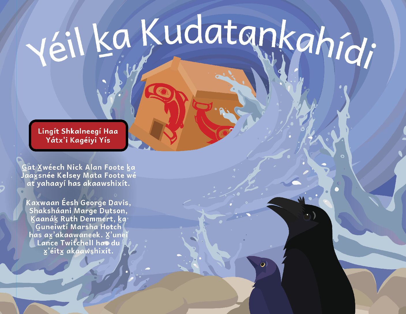 Lingít translations by Kaxwaan Éesh George Davis, Shaksháani Marge Dutson, Ḵaanáḵ Ruth Demmert, and X̱ʼunei Lance Twitchell.